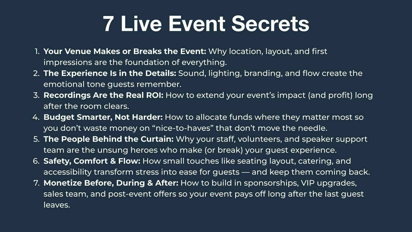 "Proxy and the Live Event Formula gave me a clear, structured process—no fluff, just straight tactics—that made my event world-class"